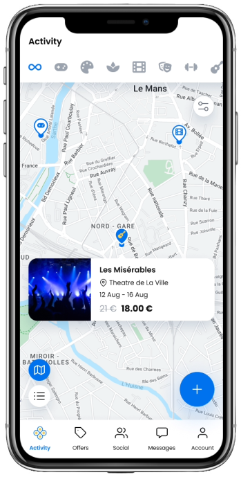 Sélectionne le lieu de ton choix grâce à notre map interactive et découvre les offres spéciales négociées pour toi.